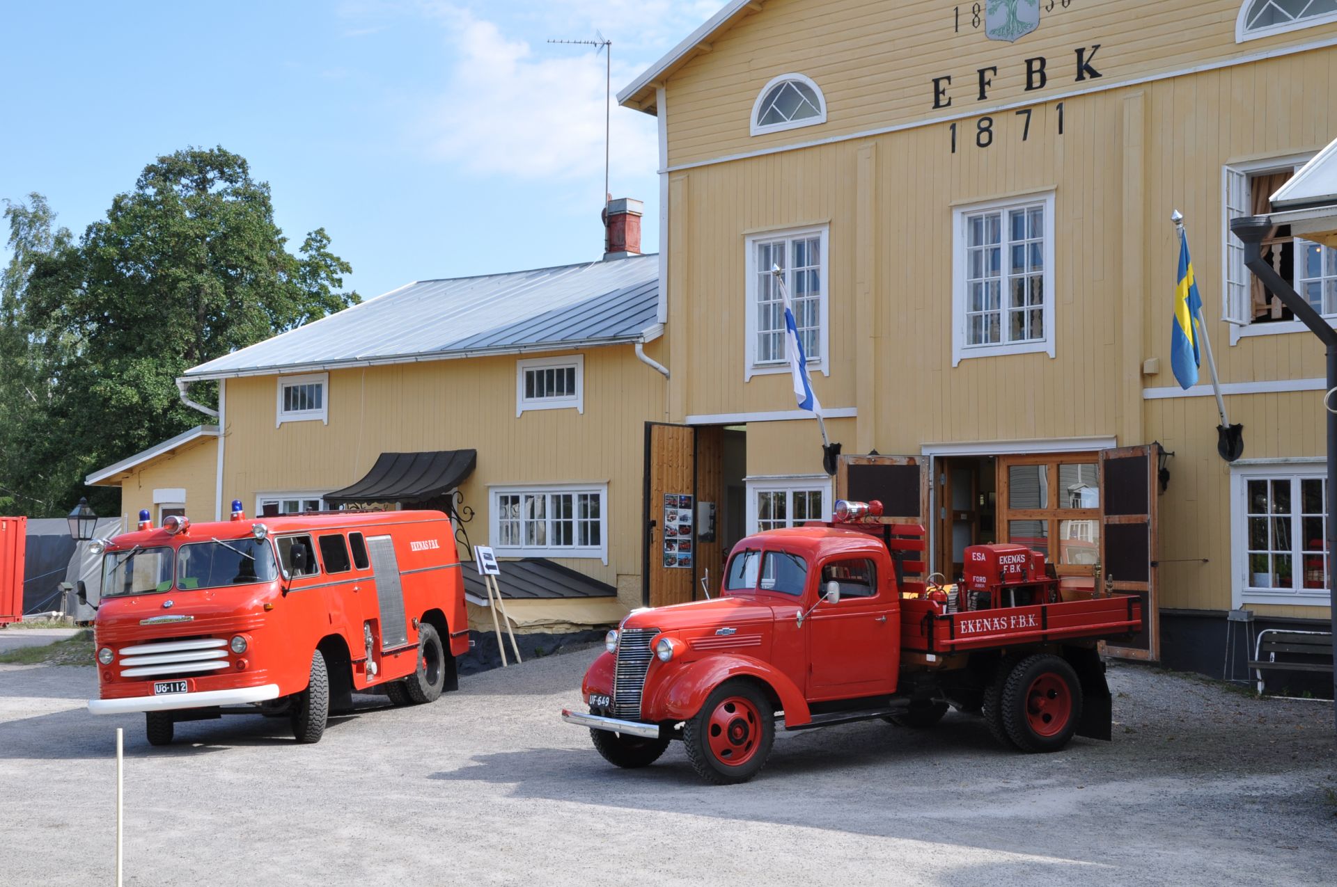 I museet bevaras föremål så som motorsprutor och annan släckningsutrustning från svunna tider tillsammans med tre av Ekenäs FBK.s veteranbrandbilar.